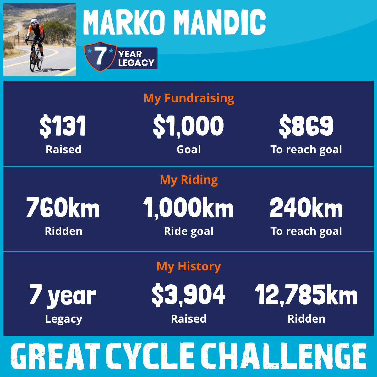 And so I am riding and raising funds to support the Children's Medical Research Institute to continue their work into the prevention, diagnosis, treatment and finding a cure for childhood cancer.