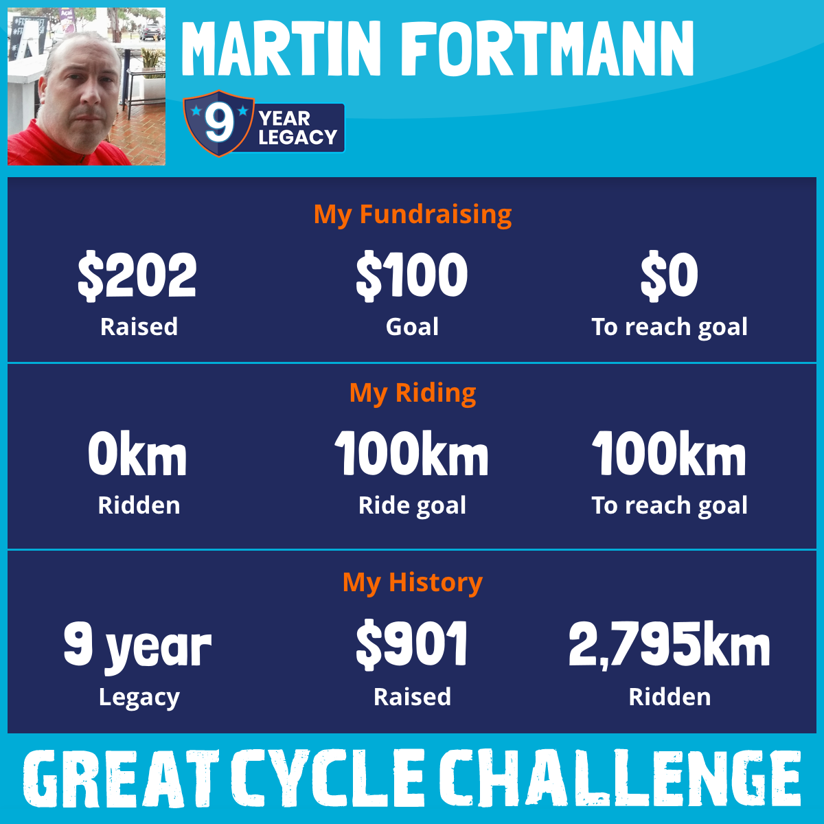 1,143 km Ridden$270 Raised2017