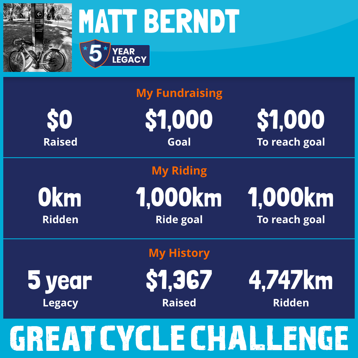 And so I am riding and raising funds to support the Children's Medical Research Institute to continue their work into the prevention, diagnosis, treatment and finding a cure for childhood cancer.