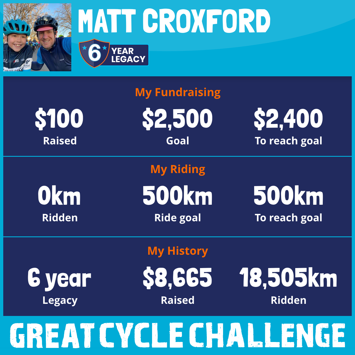 6,470 km Ridden$3,291 Raised2021