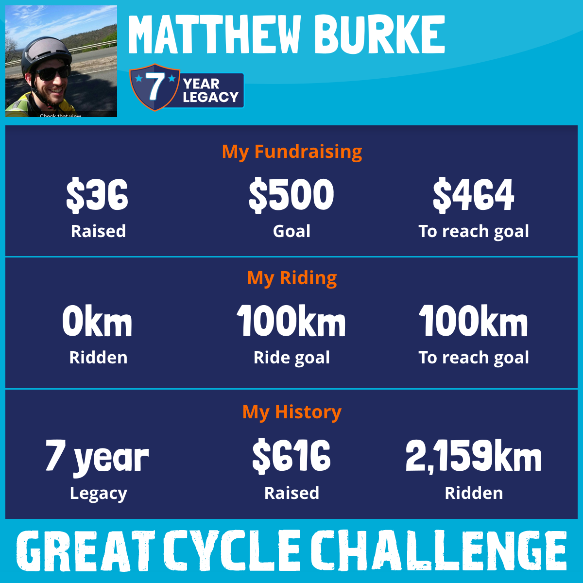 1,080 km Ridden$224 Raised2016
