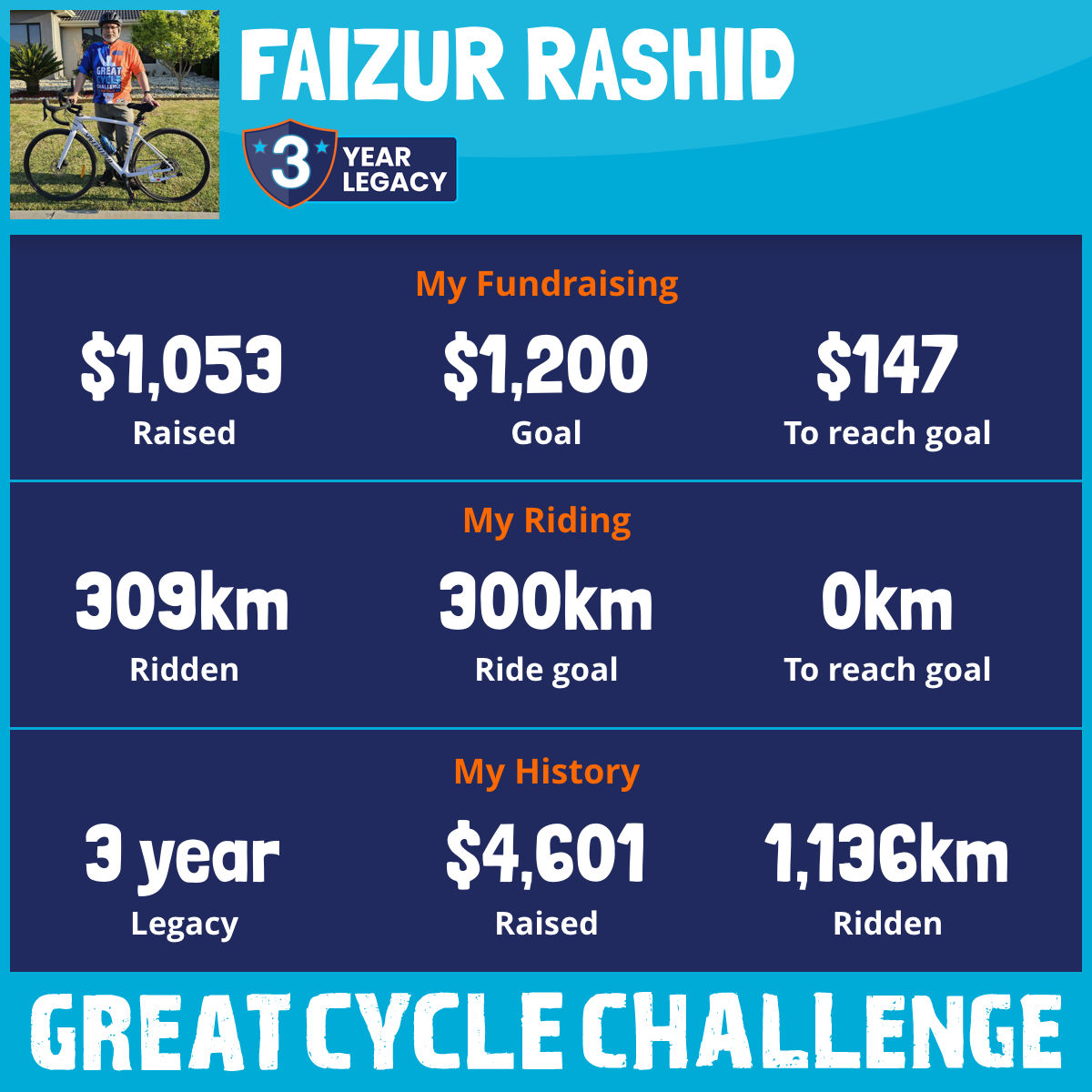 370 km Ridden$1,103 Raised2025