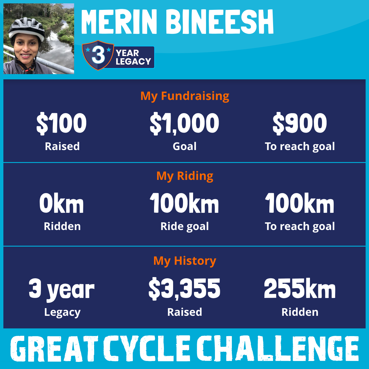 And so I am riding and raising funds to support the Children's Medical Research Institute to continue their work into the prevention, diagnosis, treatment and finding a cure for childhood cancer.