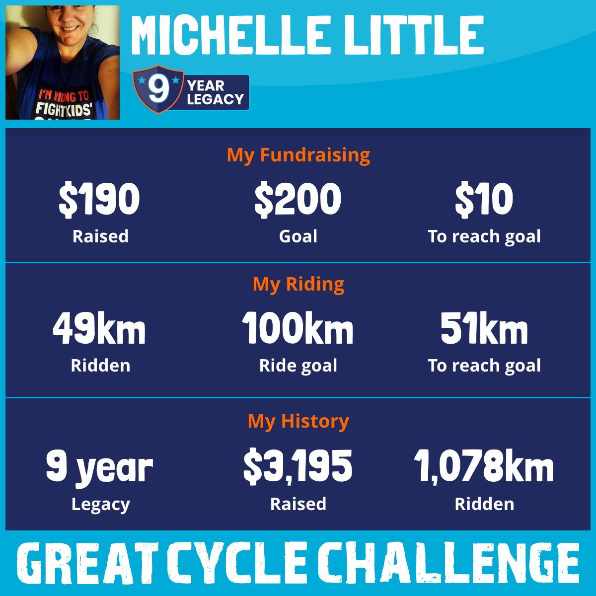 And so I am riding and raising funds to support the Children's Medical Research Institute to continue their work into the prevention, diagnosis, treatment and finding a cure for childhood cancer.