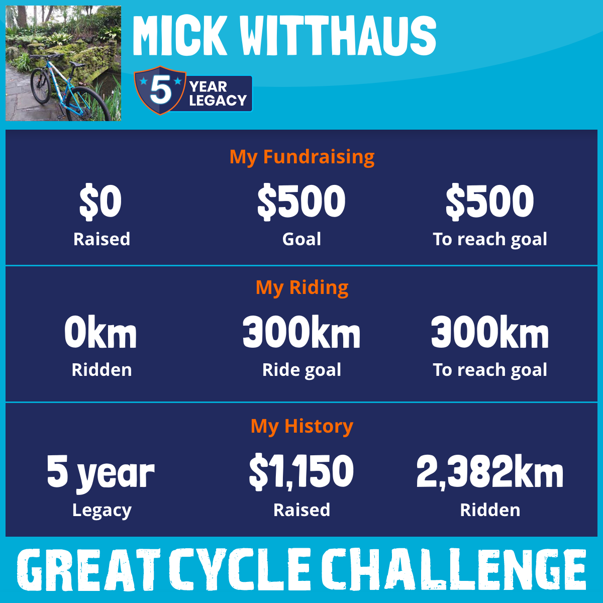 This is my 5th year riding and this year I hope to ride at least 300km and raise a minimum of $500