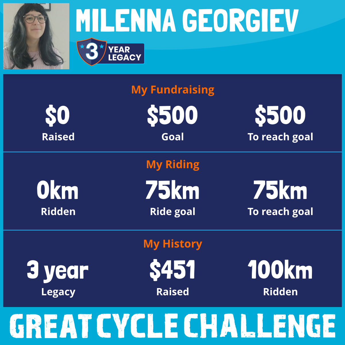 And so I am riding and raising funds to support the Children's Medical Research Institute to continue their work into the prevention, diagnosis, treatment and finding a cure for childhood cancer.