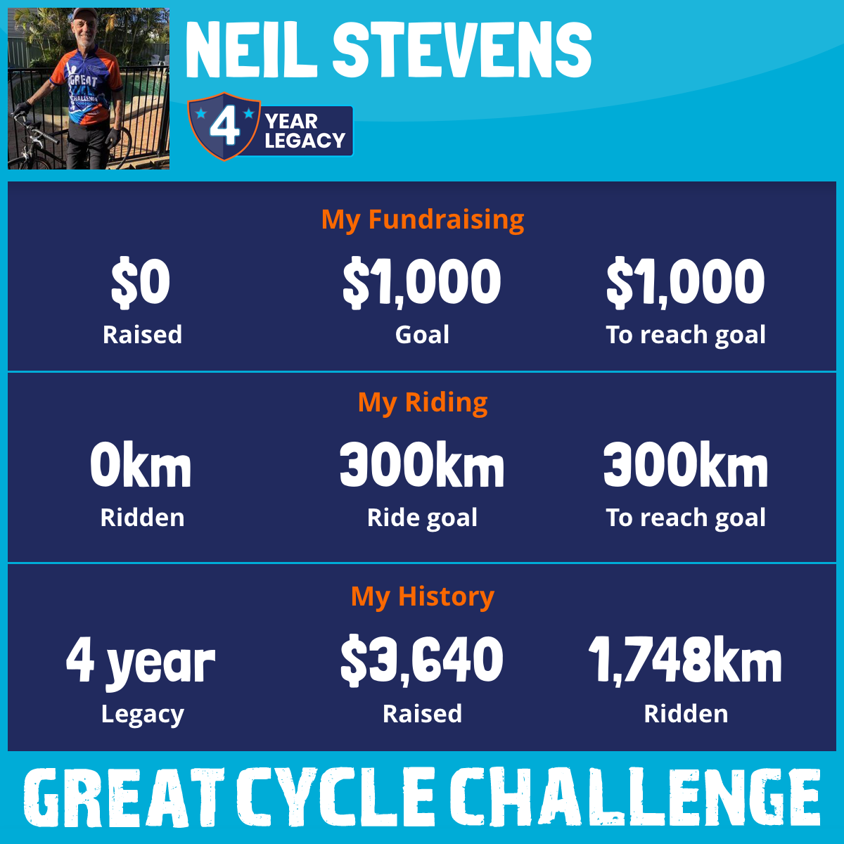 332 km Ridden$1,080 Raised2025