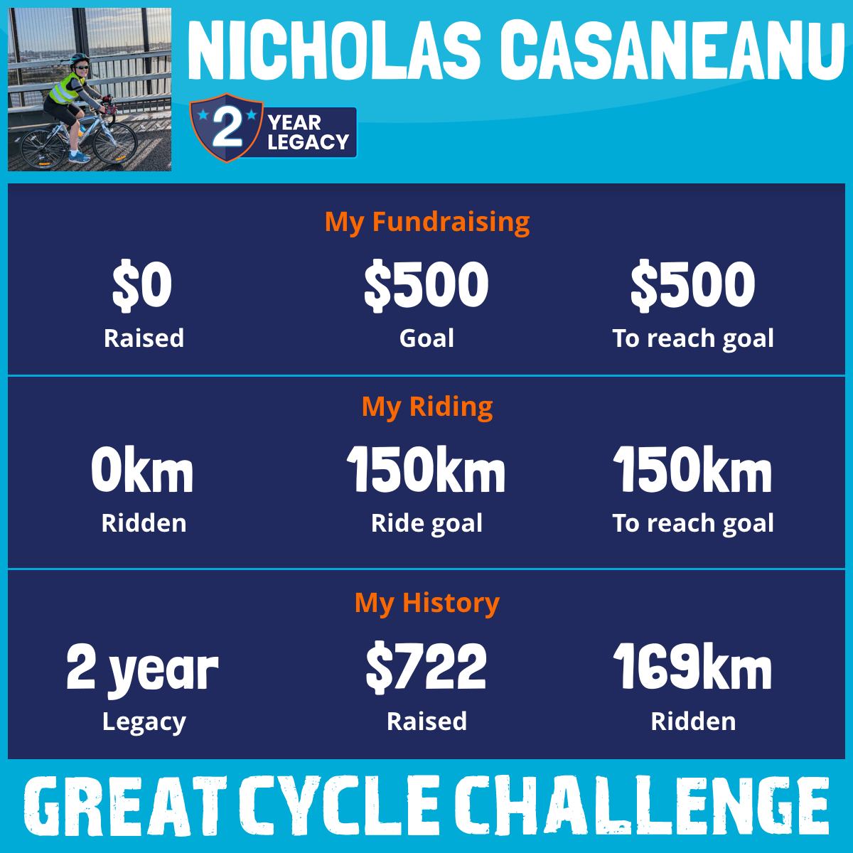 169 km Ridden$722 Raised2024
