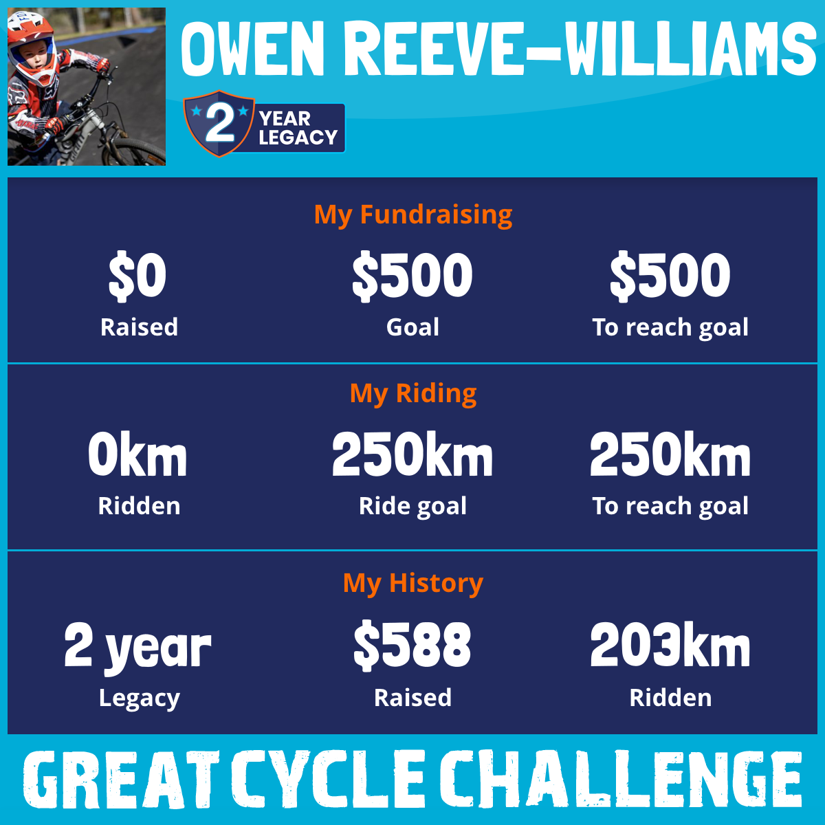 “Great work Owen and a wonderful cause to raise money for. You have my support.”