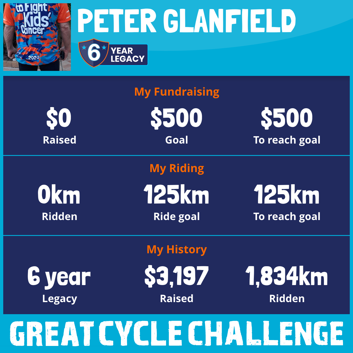 Cancer is the largest single killer of children from disease in Australia – I have kids, grandkids and now a wonderful great-grand son so I'm riding again this year.