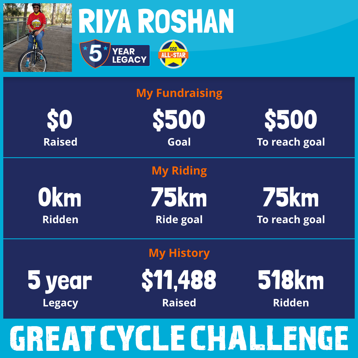 And so I am riding and raising funds to support the Children's Medical Research Institute to continue their work into the prevention, diagnosis, treatment and finding a cure for childhood cancer.