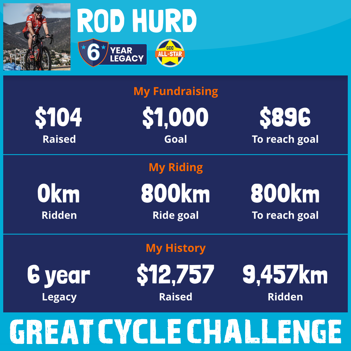 2,051 km Ridden$3,390 Raised2023