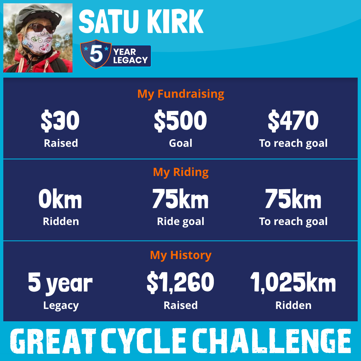 302 km Ridden$667 Raised2024