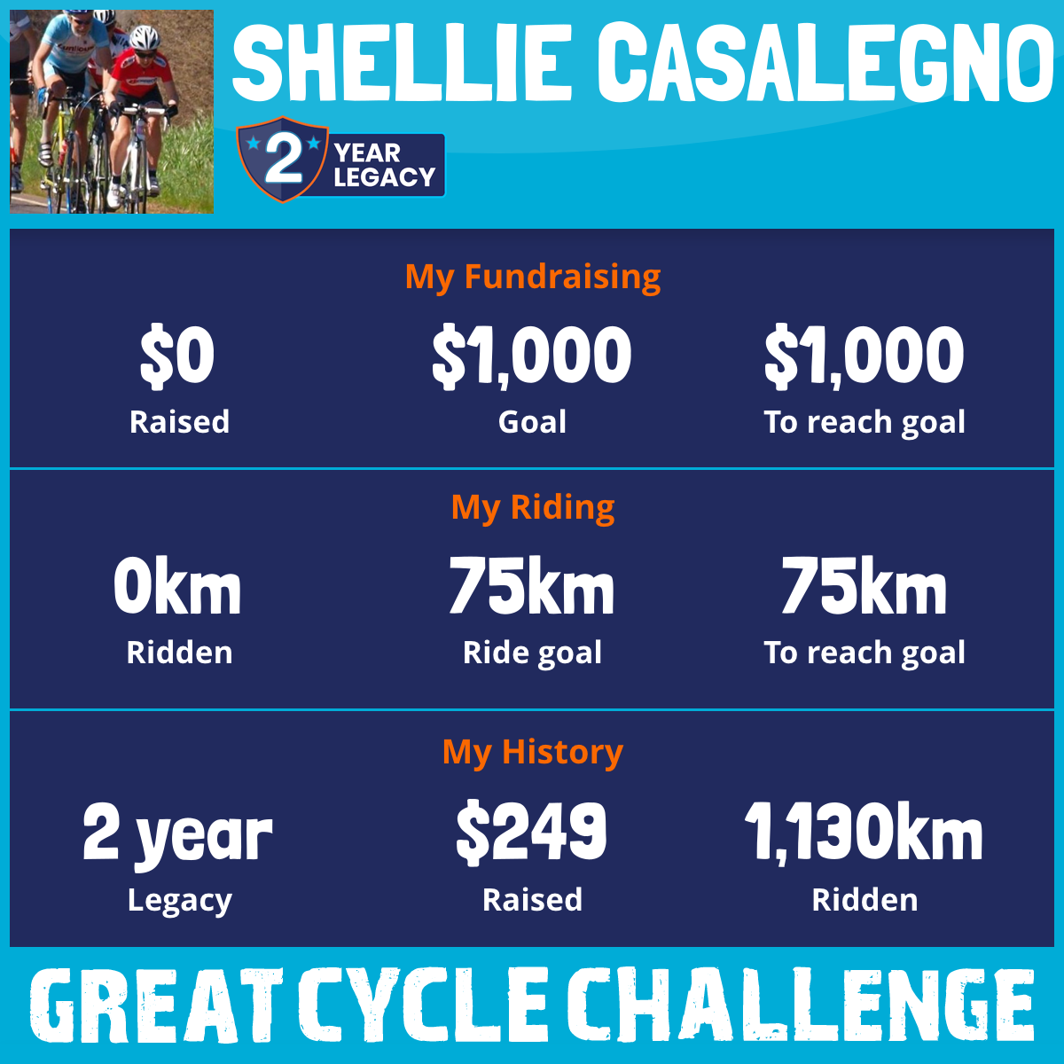 And so I am riding and raising funds to support the Children's Medical Research Institute to continue their work into the prevention, diagnosis, treatment and finding a cure for childhood cancer.