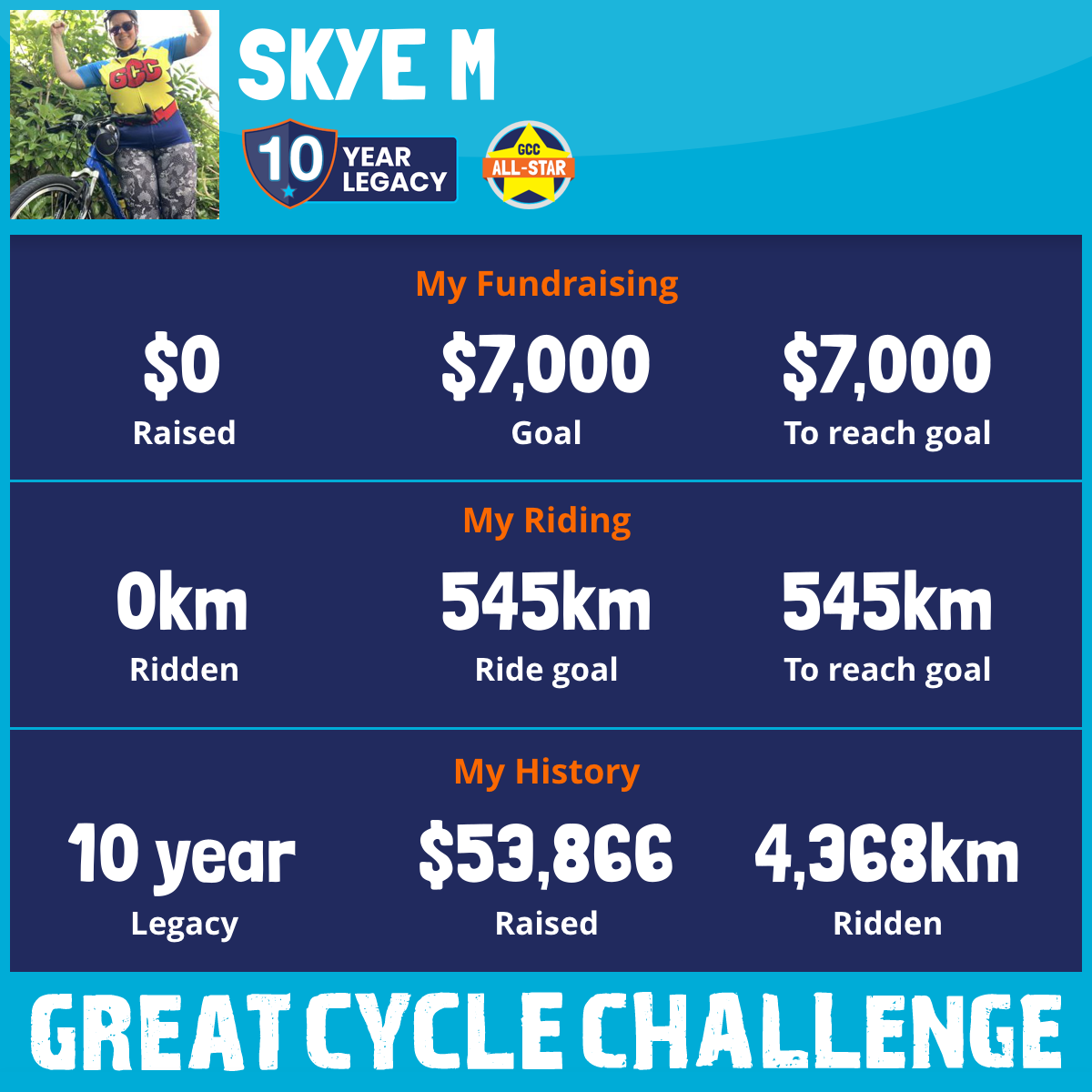 And so I am riding and raising funds to support the Children's Medical Research Institute to continue their work into the prevention, diagnosis, treatment and finding a cure for childhood cancer.