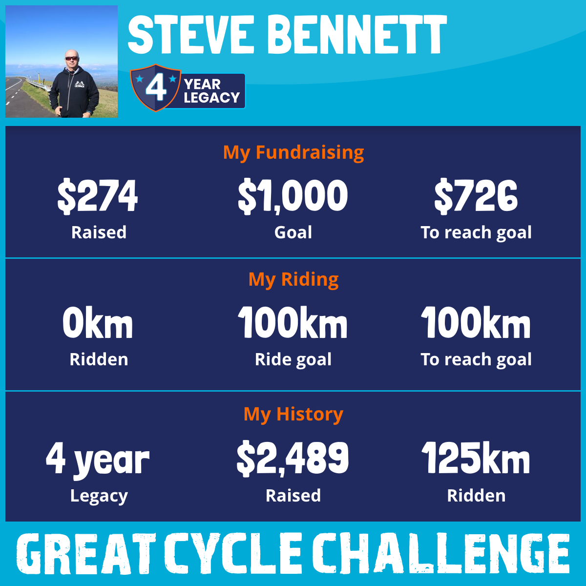 125 km Ridden$408 Raised2023