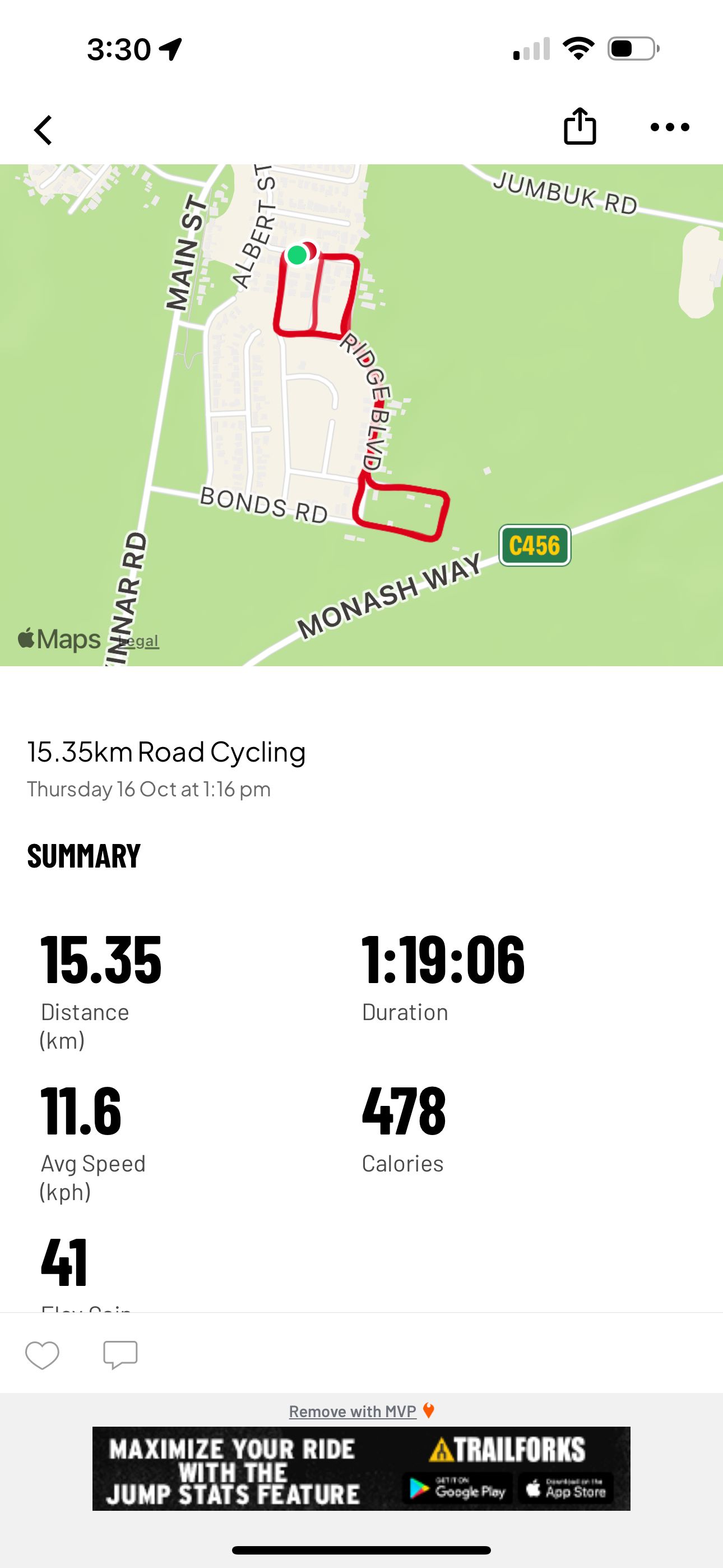 15.3 km ride - 15.35km Road Cycling - Thursday, October 16, 2025