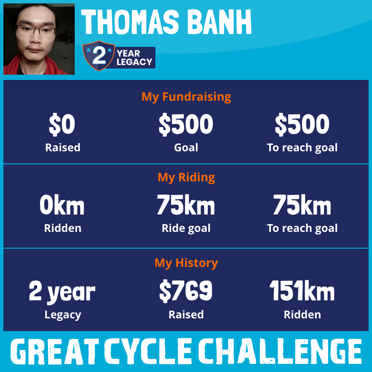 151 km Ridden$769 Raised2024