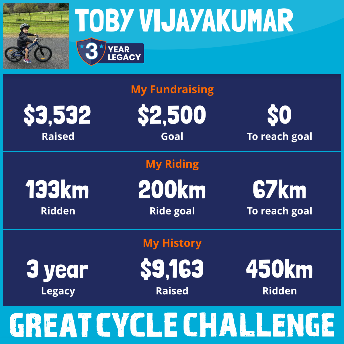 138 km Ridden$3,563 Raised2026