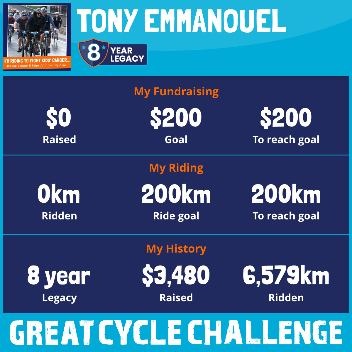 And so I am riding and raising funds to support the Children's Medical Research Institute to continue their work into the prevention, diagnosis, treatment and finding a cure for childhood cancer.
