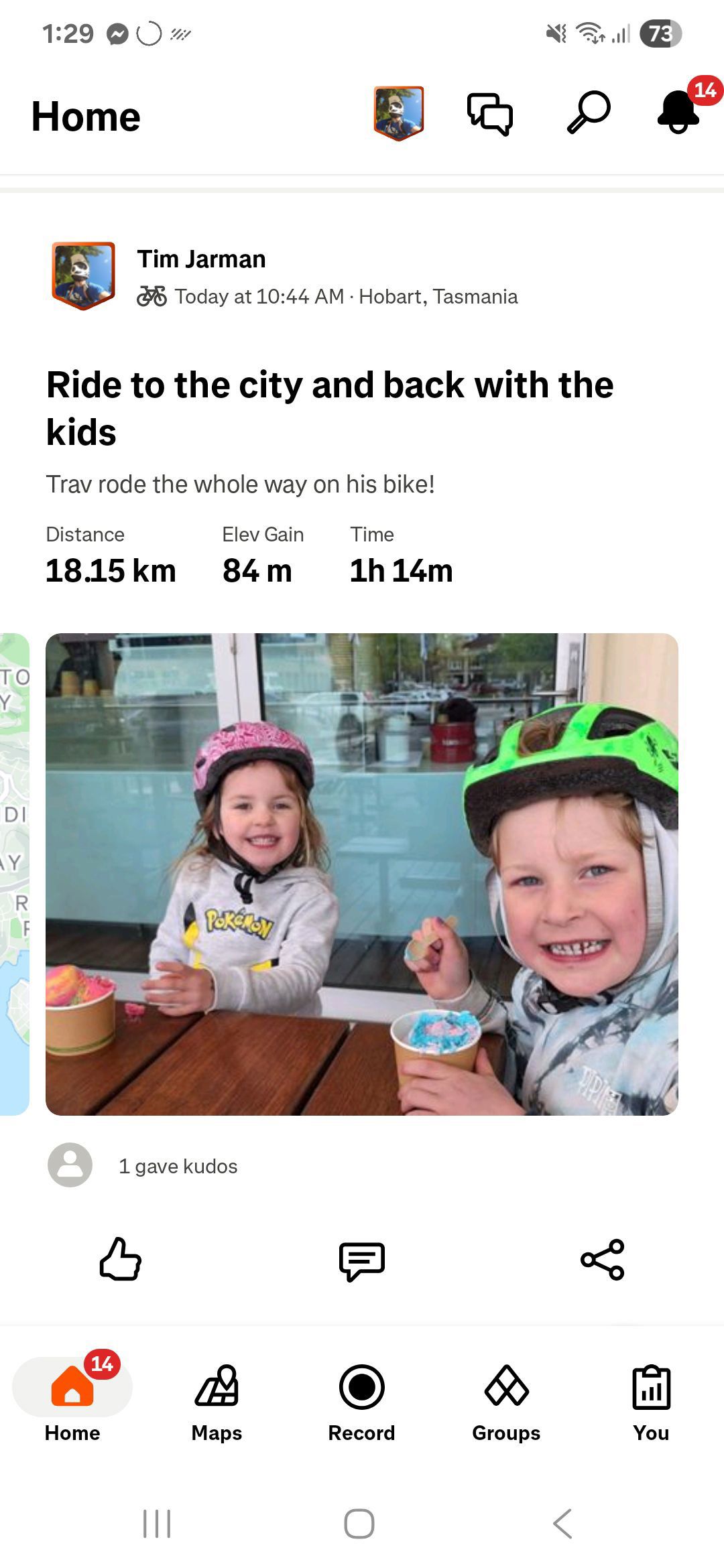 18.1 km ride - Glenorchy to the city and back for icecream! - Sunday, October 12, 2025