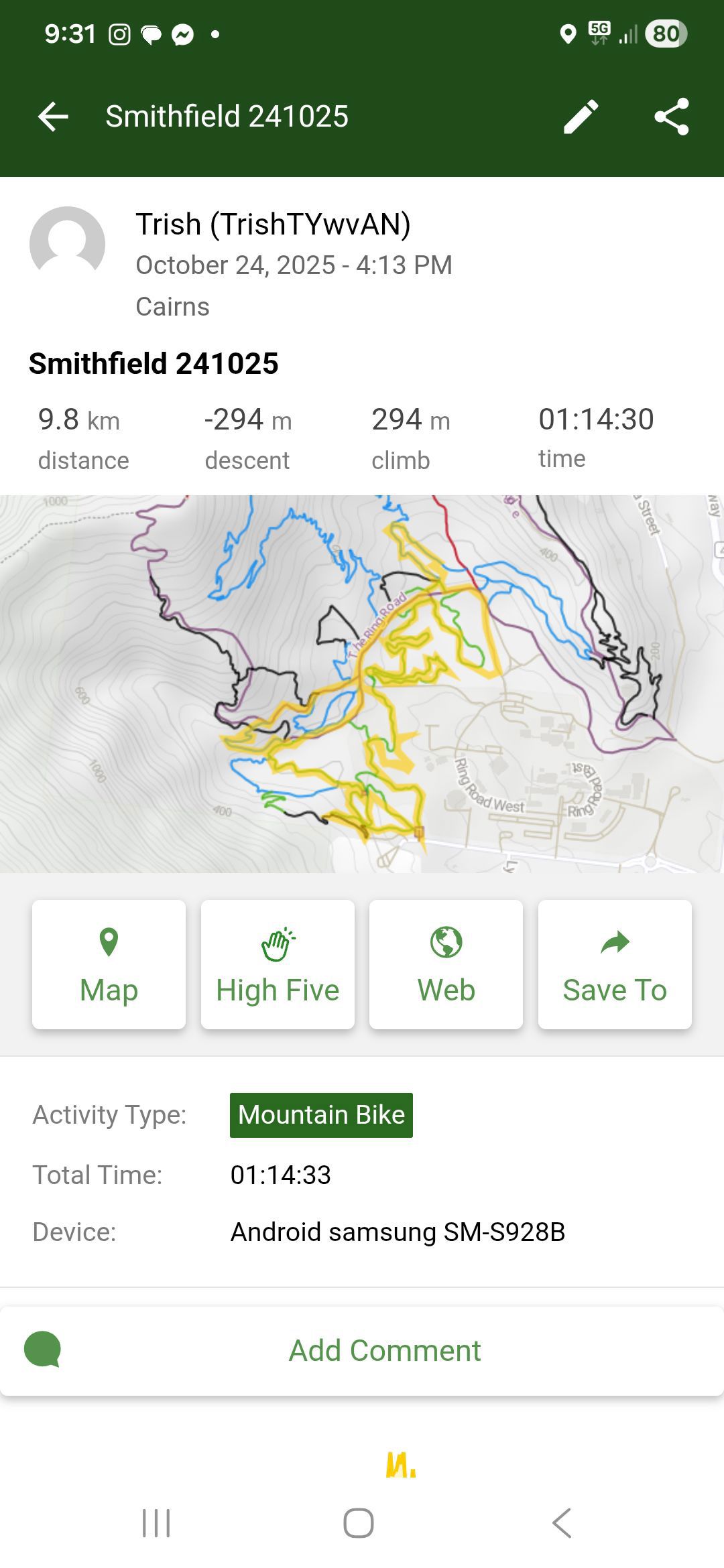 9.8 km ride - Smithfield Trails - Friday, October 24, 2025