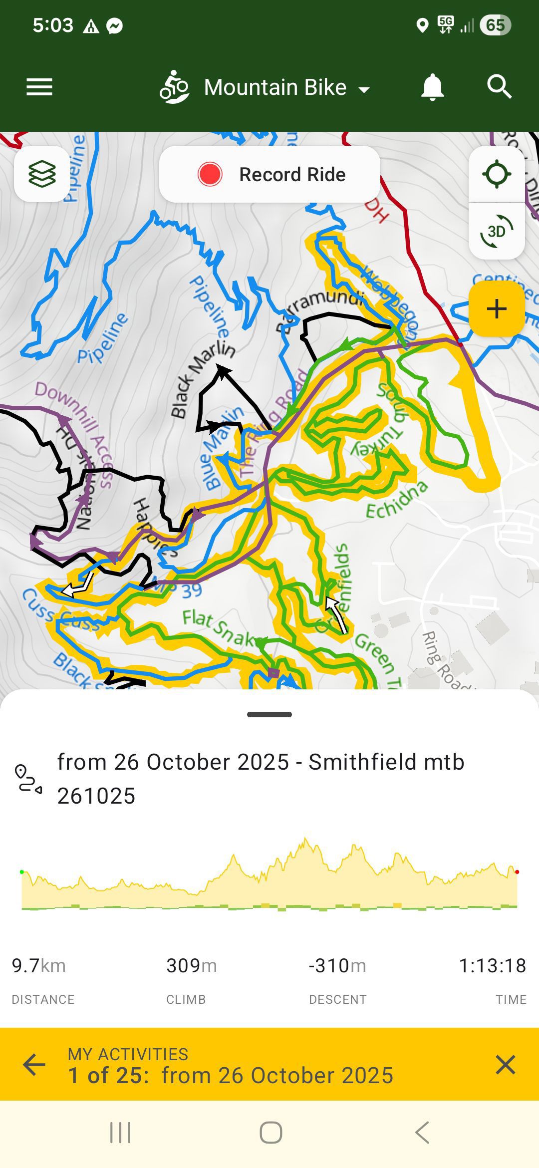 9.7 km ride - Smithfield trails - Sunday, October 26, 2025