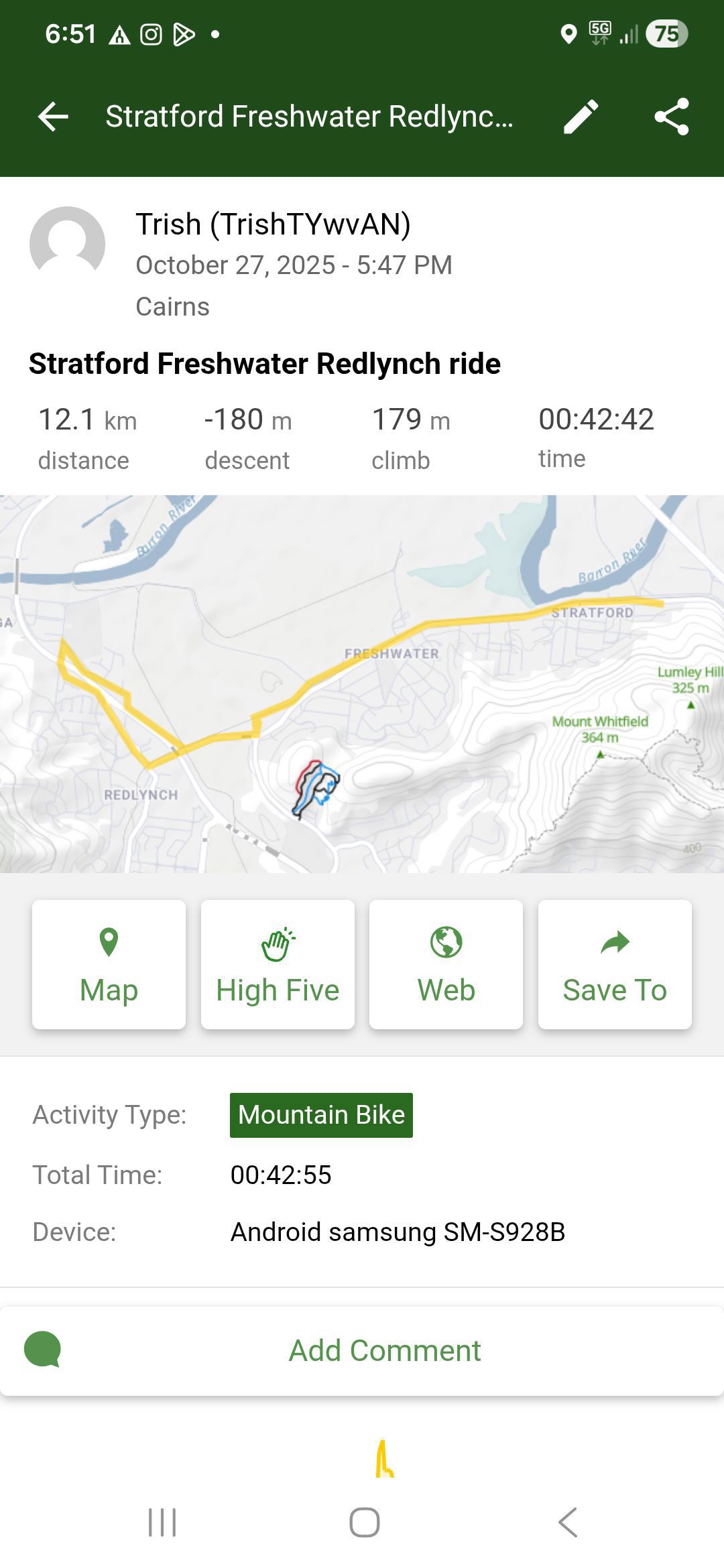 12.1 km ride - Stratford Freshwater Redlynch 2 - Wednesday, October 29, 2025