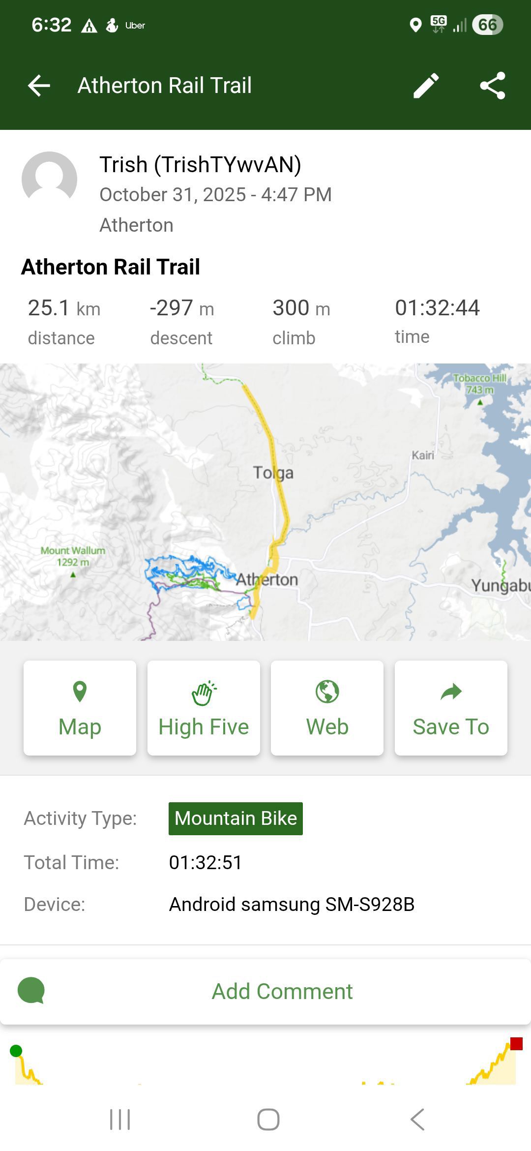 25.1 km ride - Atherton Rail Trail - Friday, October 31, 2025