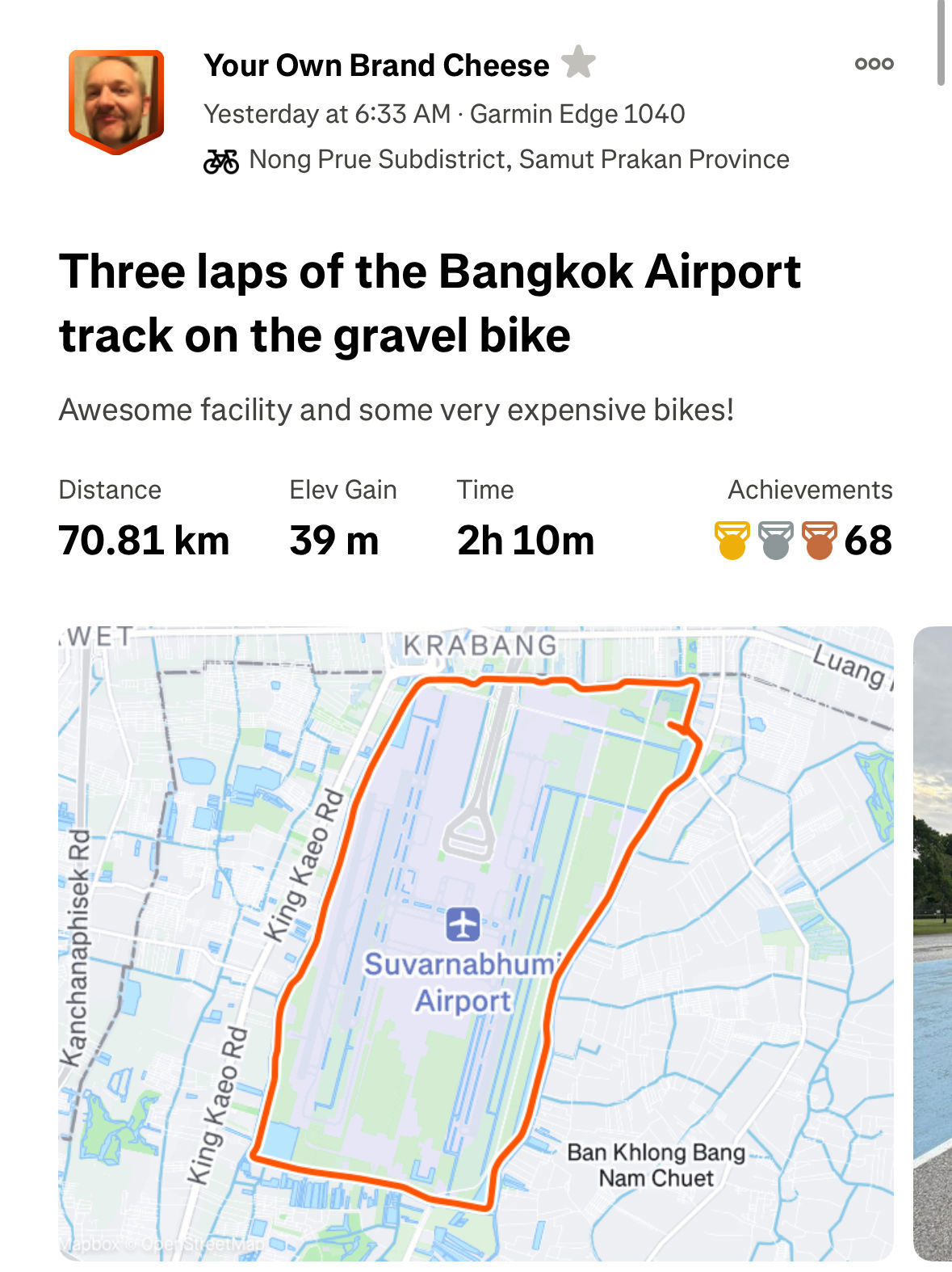 70.8 km ride - Airport ride - Wednesday, October 29, 2025