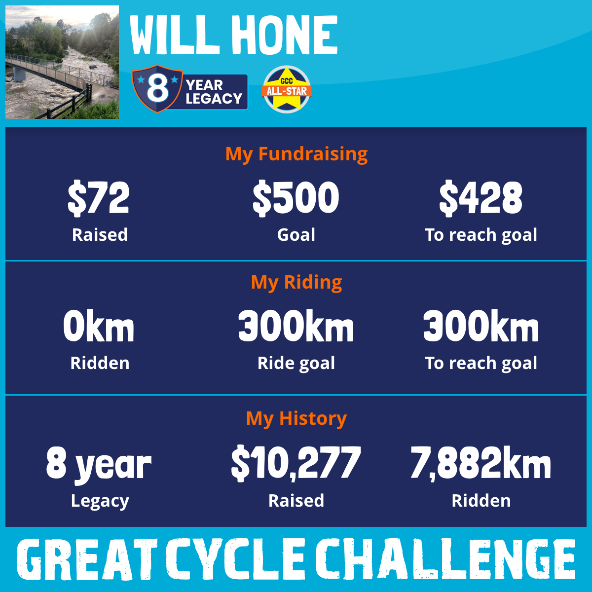 And so I am riding and raising funds to support the Children's Medical Research Institute to continue their work into the prevention, diagnosis, treatment and finding a cure for childhood cancer.