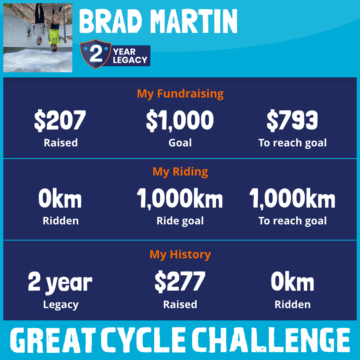 And so I am riding and raising funds to support the Children's Medical Research Institute to continue their work into the prevention, diagnosis, treatment and finding a cure for childhood cancer.