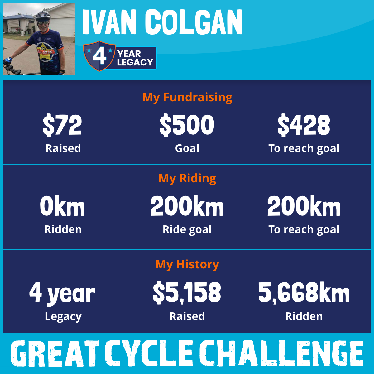 3,617 km Ridden$3,576 Raised2023