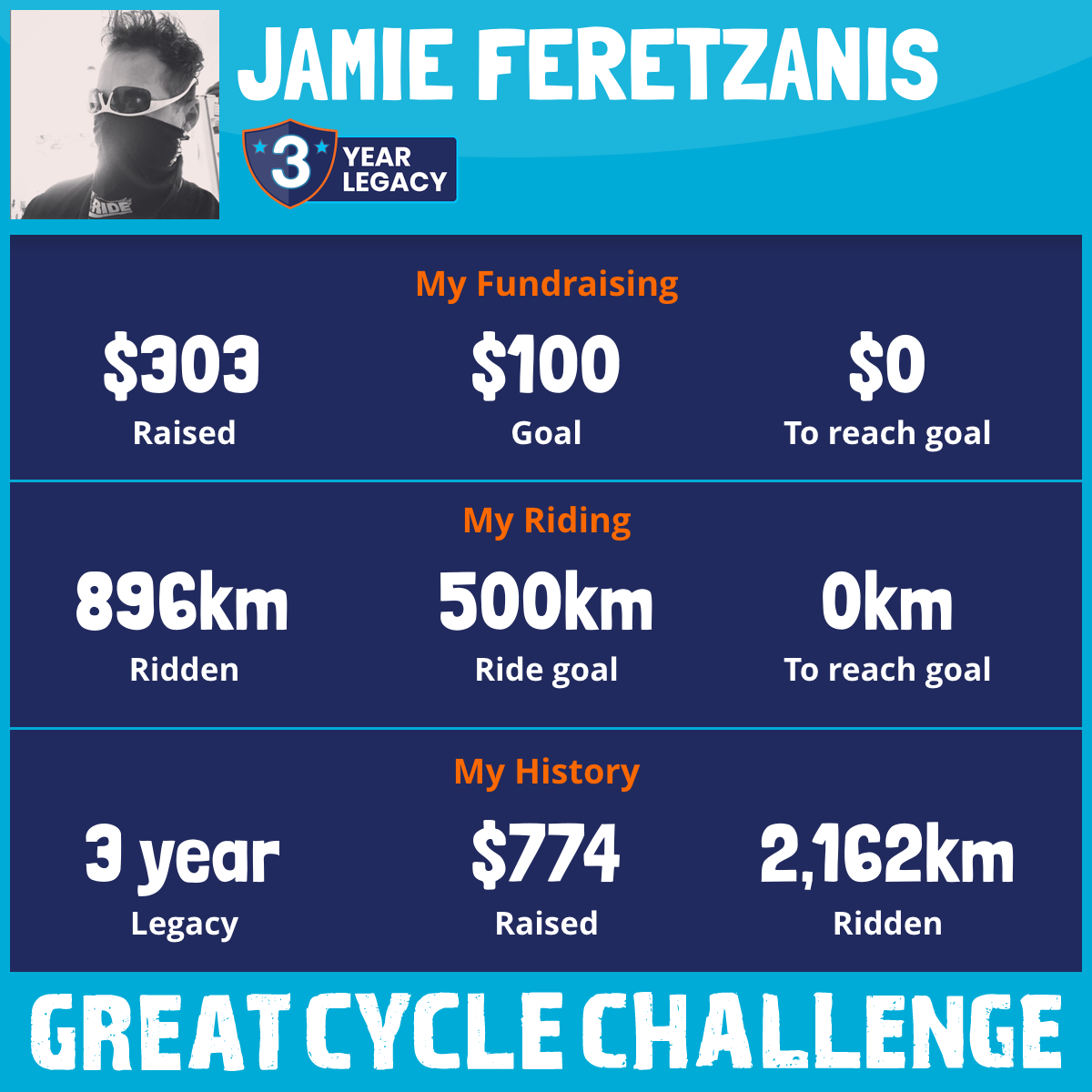 1,832 km Ridden$303 Raised2025