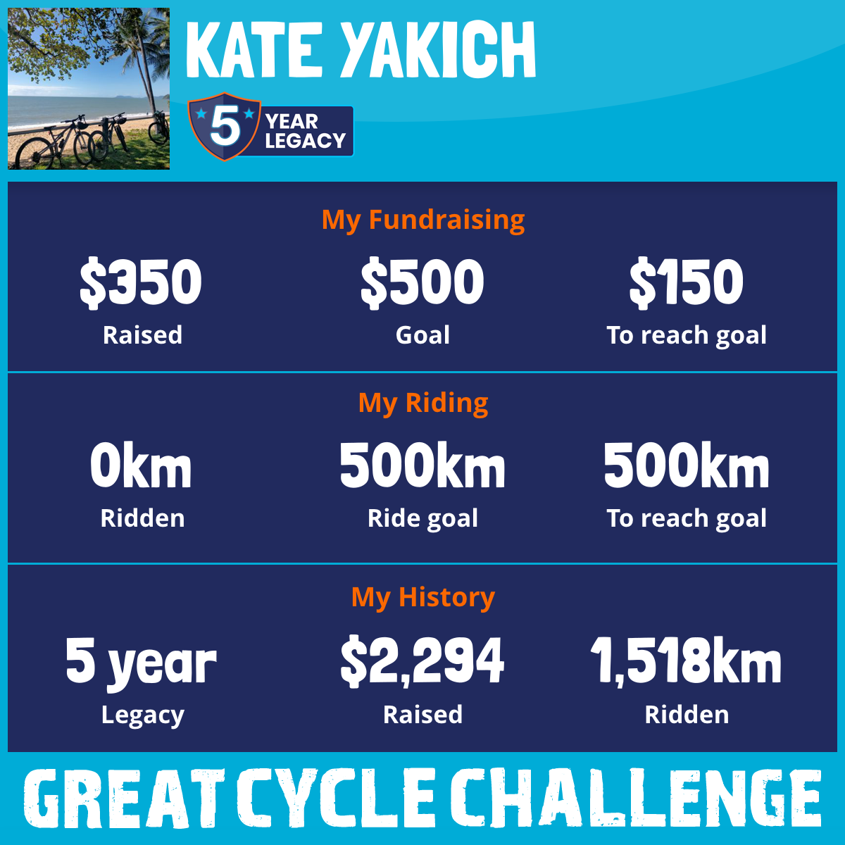 916 km Ridden$1,302 Raised2023